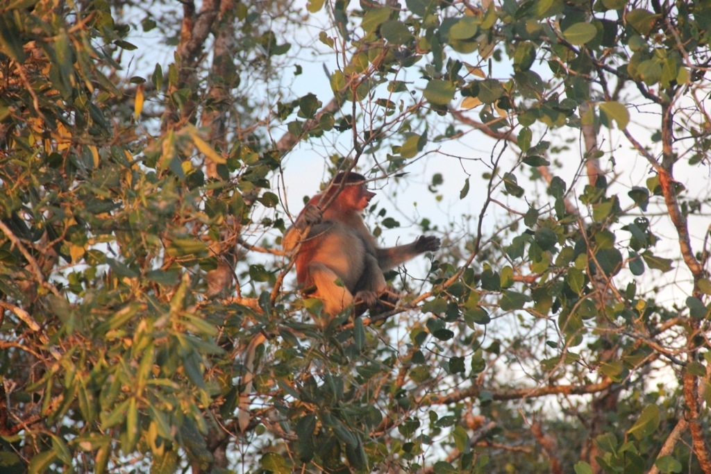 A game of I Spy seemed to calm her down as we headed upriver into the mangroves for the next wildlife spotting: proboscis monkeys. Easily identified by their large, red, clown-like nasal appendages, the proboscis monkeys are easiest to spot at dusk, when they come out to feed. We spied a few, but they were shy, and speedy, and didn’t want to keep still.