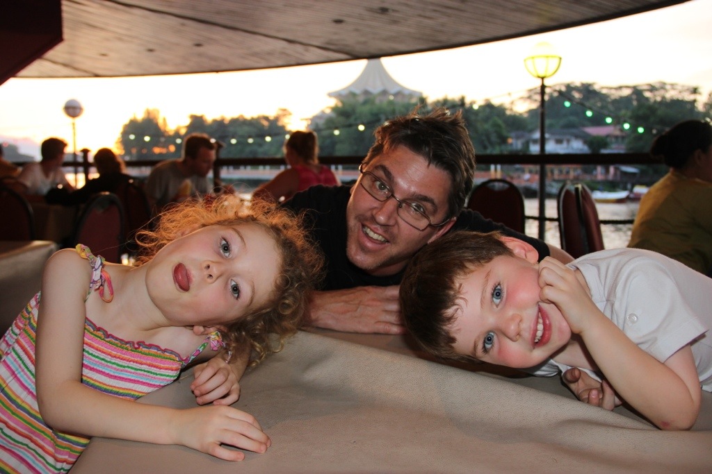 As our plane rose into the dusky evening over Kuching, bound for Penang, four-year-old Blake gazed wistfully out of the window, and said, “Oh, I miss Ka-Ching.”