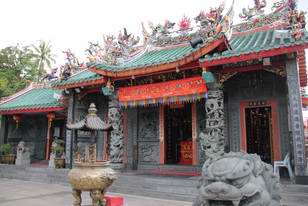 The Hong San Si Temple dates back to the 1840s, and colourful dragons sit atop its roof.