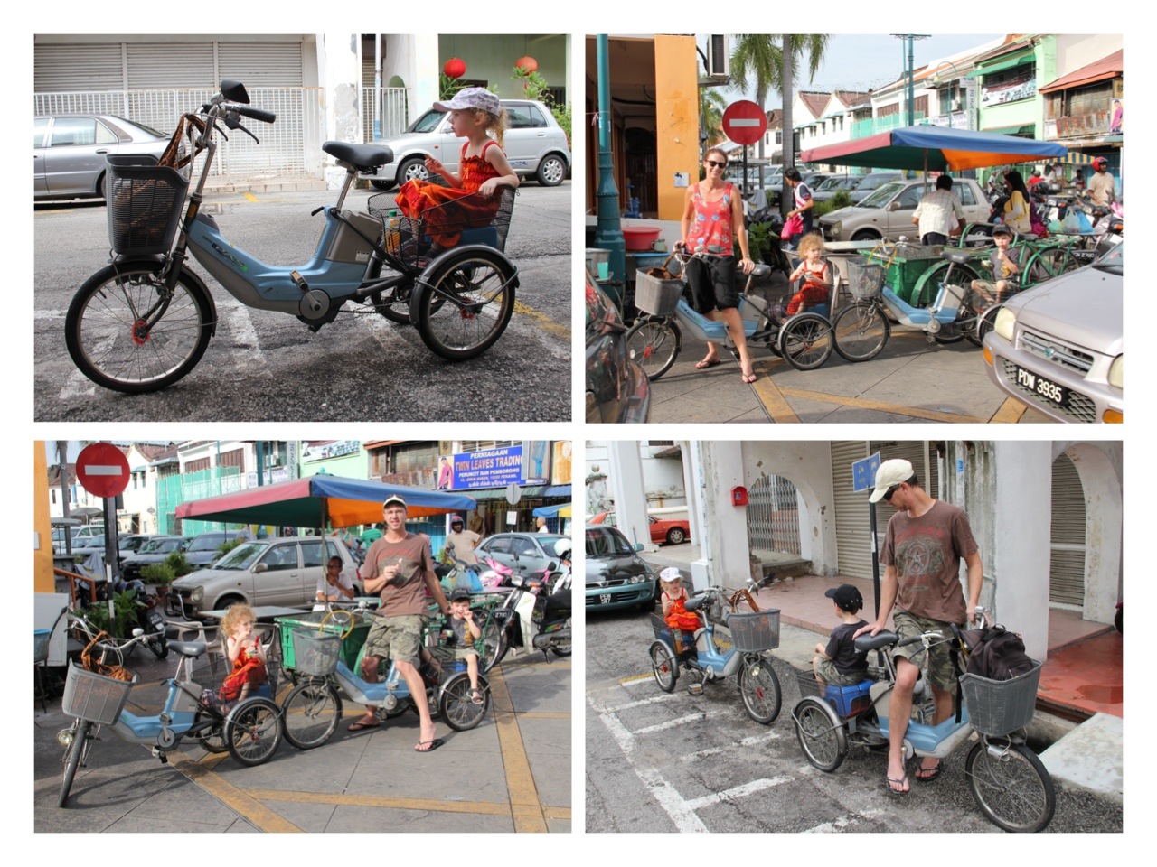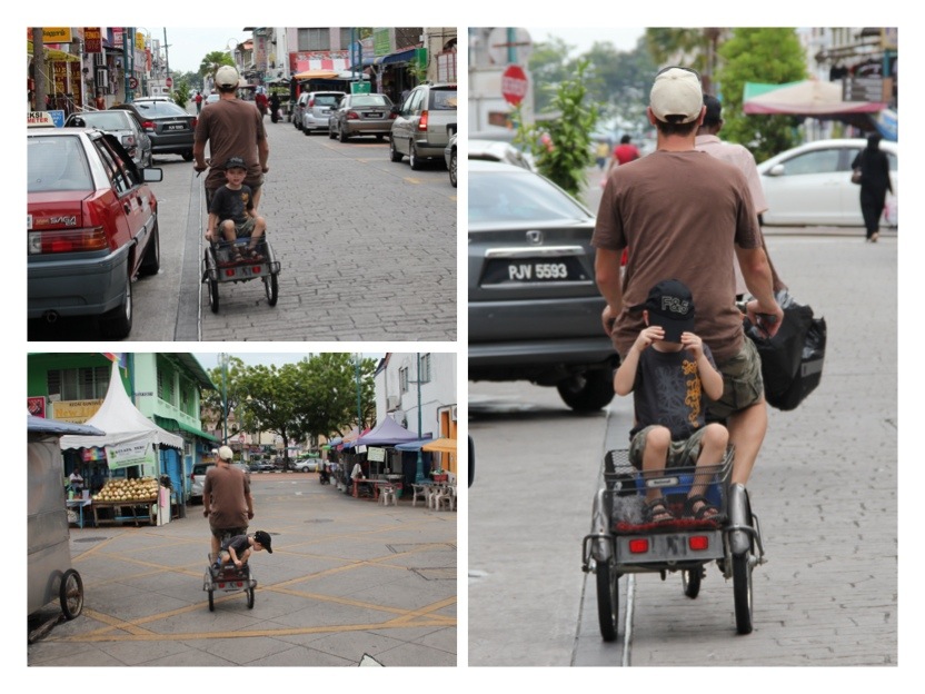 There was actually a throng there that morning, so we battled through the crowd of tourists and picked ourselves a couple of three-wheelers. Once motorised, they were now pedal-power all the way. I guess you’d call them tricycles. Seated on plastic stools inside their baskets, our precious cargo burst with excitement, and we set out on the town. I think it was $15 per bike for the whole day. ‘Bring them back by seven’ was the only instruction. Paperwork? Pffft!