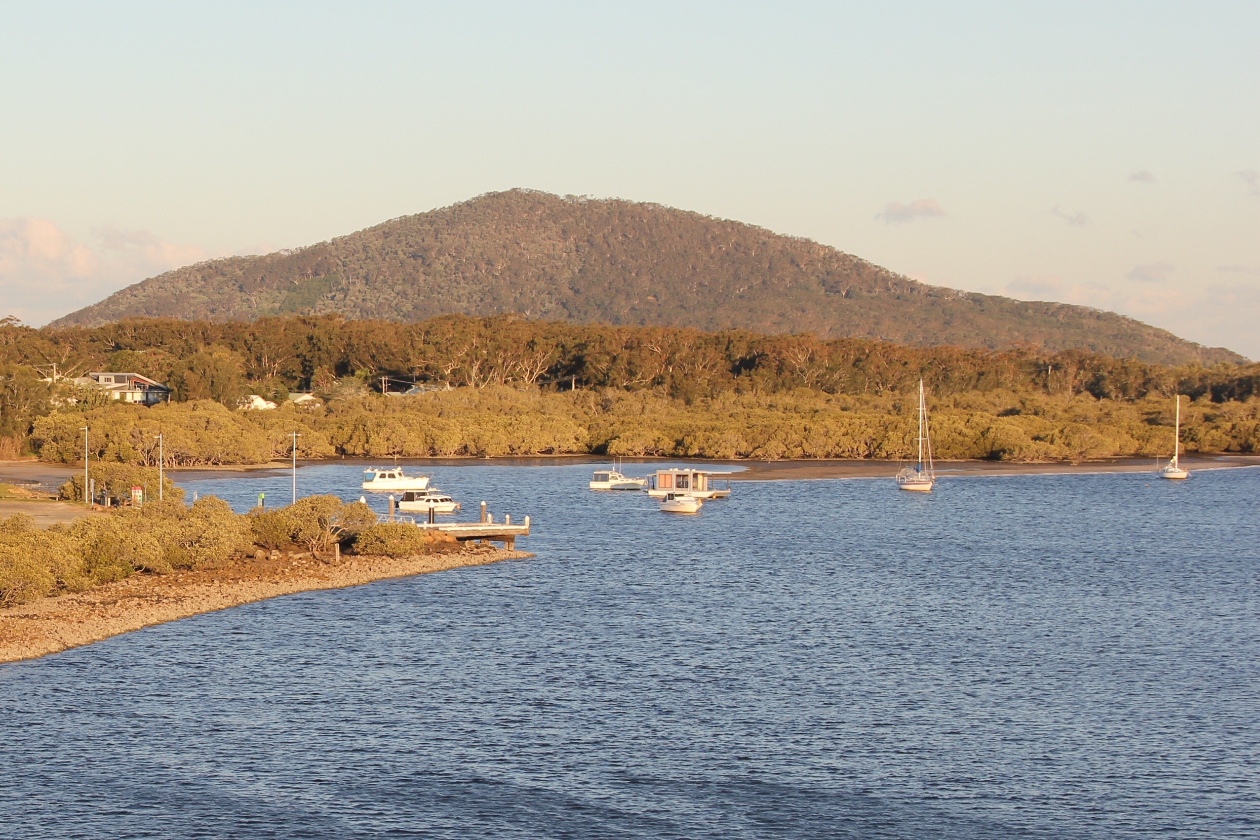 Hawks Nest Jetty on the Myall River – the Yacaaba Headland in the background
