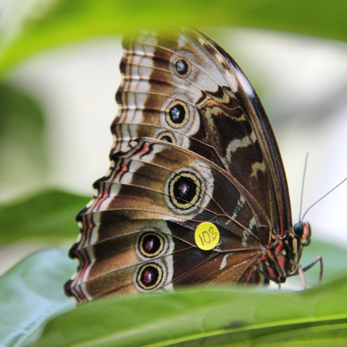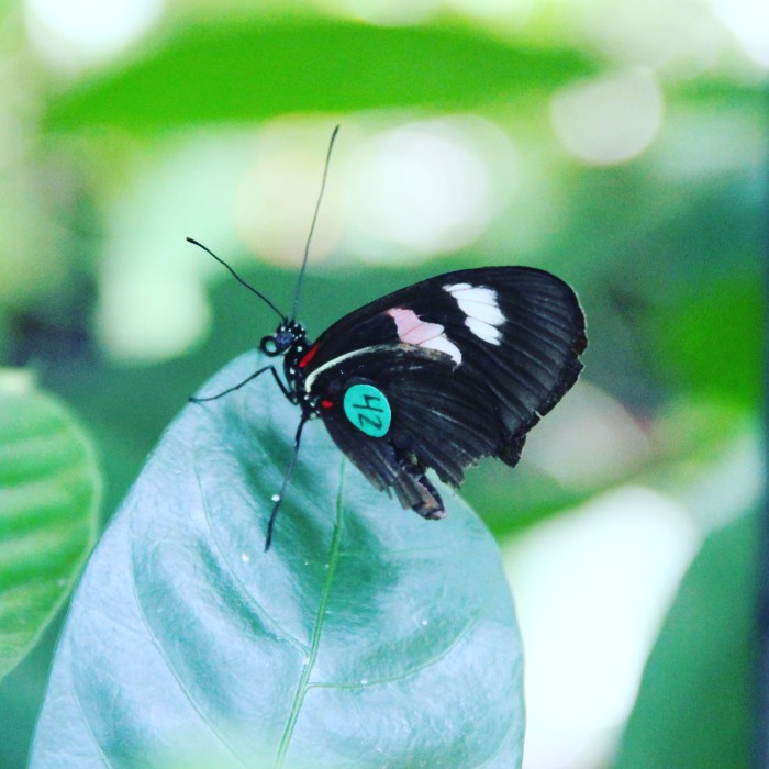 We got to be citizen scientists as well. To research the life expectancies of the butterflies, some of them are tagged. When visitors spot them, they’re encouraged to take a picture and use Instragram for good by posting the photos with the #CBCstudy hashtag. Blake spotted these two for me.