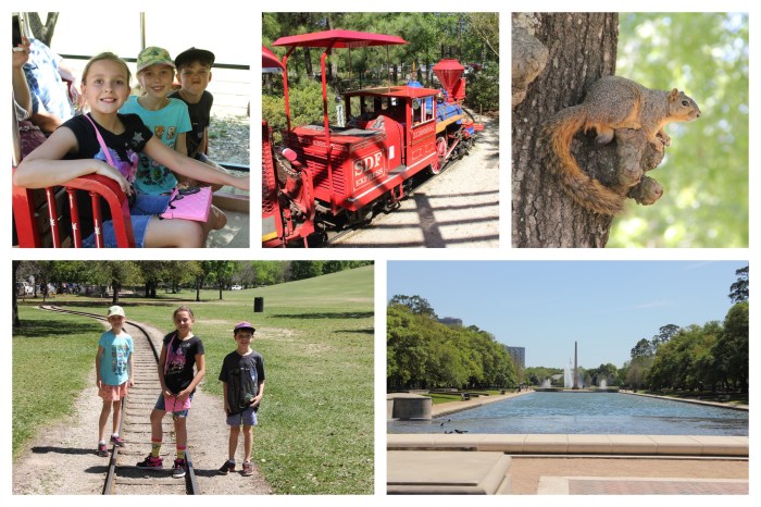 Hermann Park Conservancy is a large expanse of parkland to the south of downtown Houston. The Museum of Natural Science is situated in the park, as is Houston Zoo. A lake, ponds, fountains and squirrels are features. A little train does a 20-minute loop around the park for $3.50pp, which the kids loved. (Blake looks cranky because he thought the train was going to leave without me.)