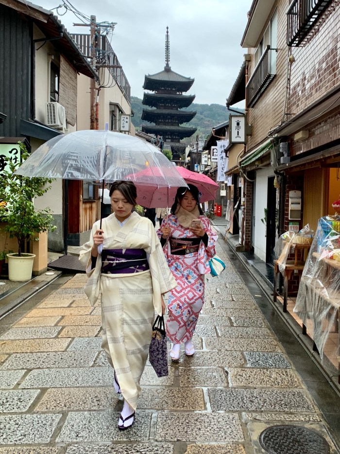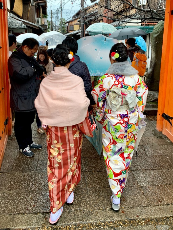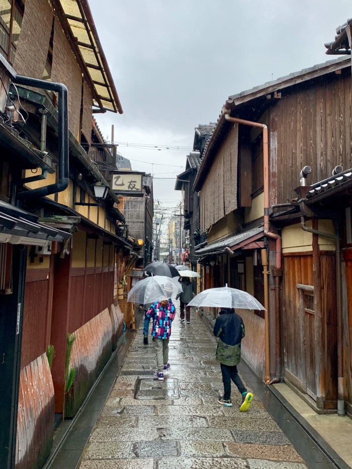 Our first day in Kyoto we enjoyed the luxury of rain. (Wishing we could send some back home.) We started with a walk through some of the old streets of Gion.