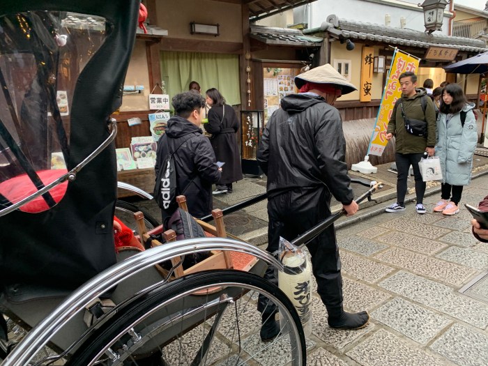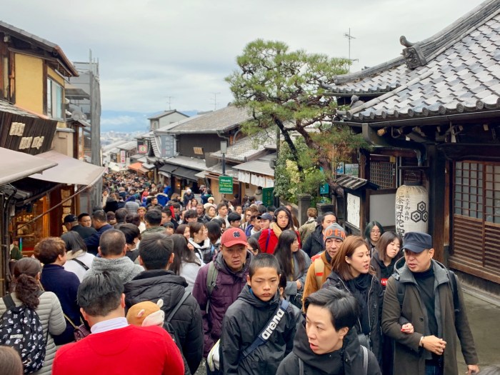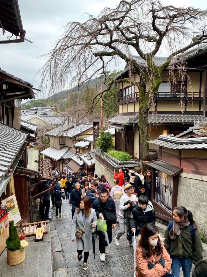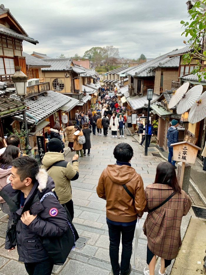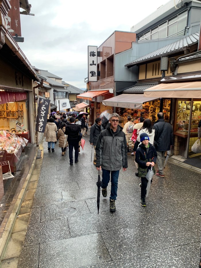 We found Sannen-zaka and Ninenzaka, stone-paved alleyways dating back to 808 (the paving), lined with traditional buildings with shops and food stalls.