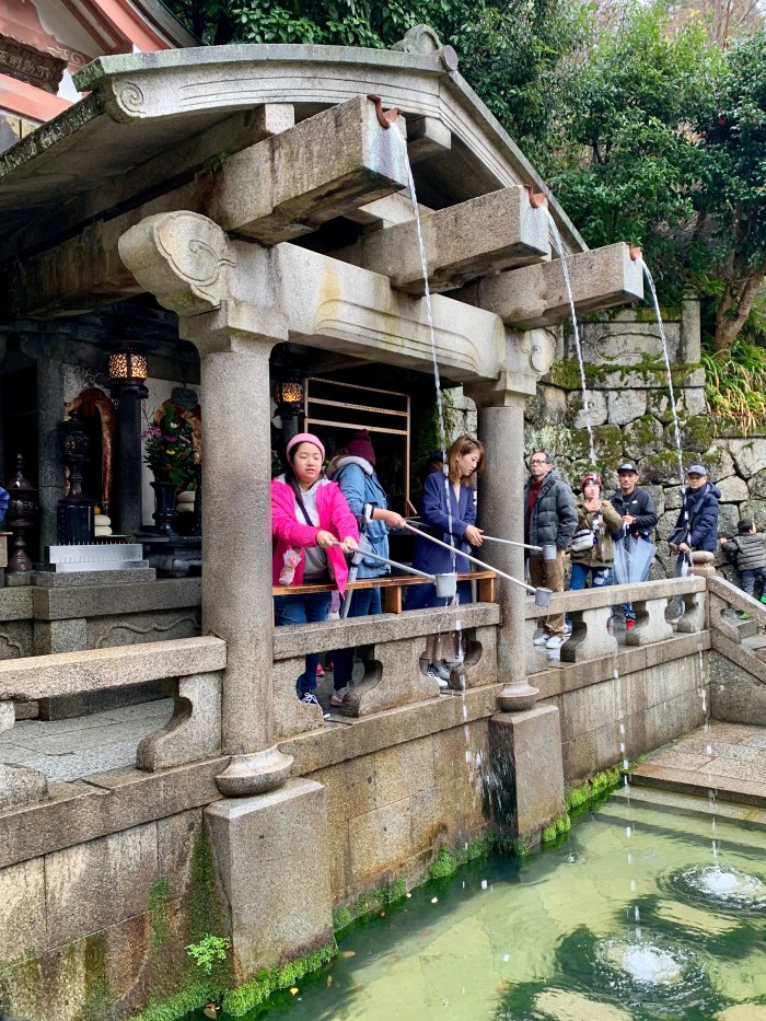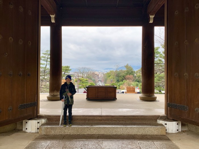 We found the famous Kiyomizu-dera temple at the top of the hill overlooking eastern Kyoto. It’s over a thousand years old. The main temple is under renovation and had scaffolding around it, but the complex is expansive, with a view over Kyoto.