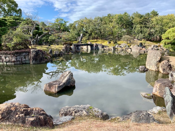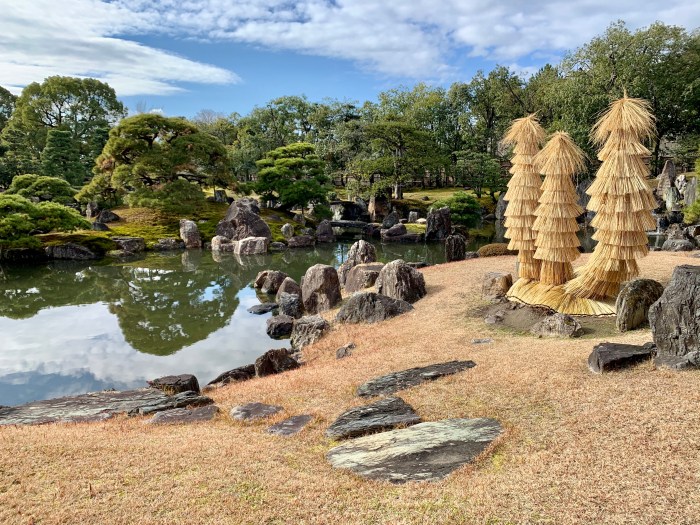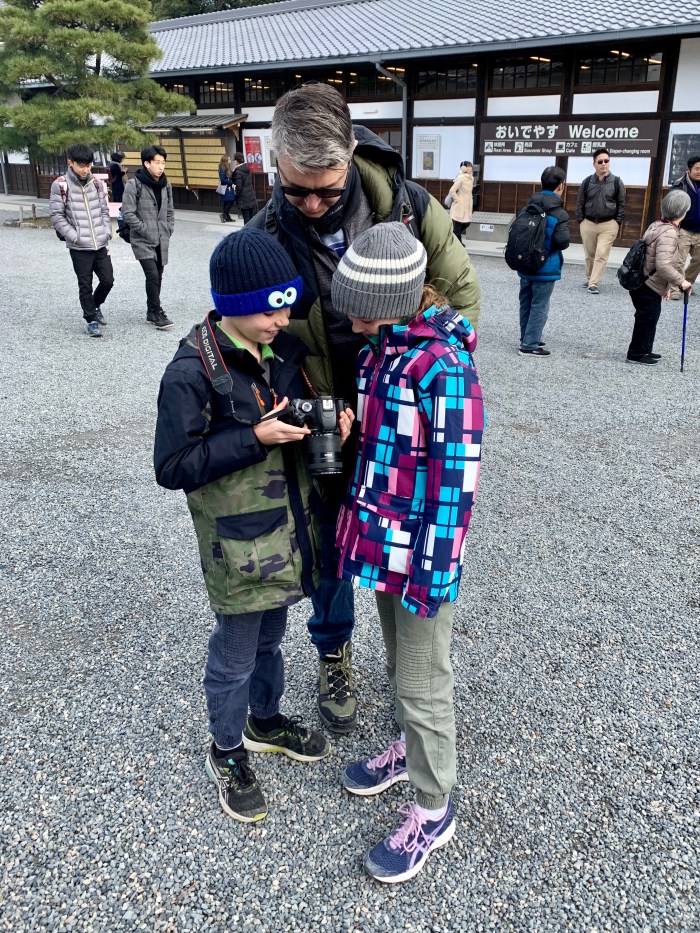 Continuing our journey along the tourist trail of Kyoto, on New Year’s morning we stopped in at Nijojo, which was built in 1603 by the first shogun of the Edo period, became the imperial palace for a time in the 1800s, before being donated to the city as a historic site. I do love a castle with a moat.