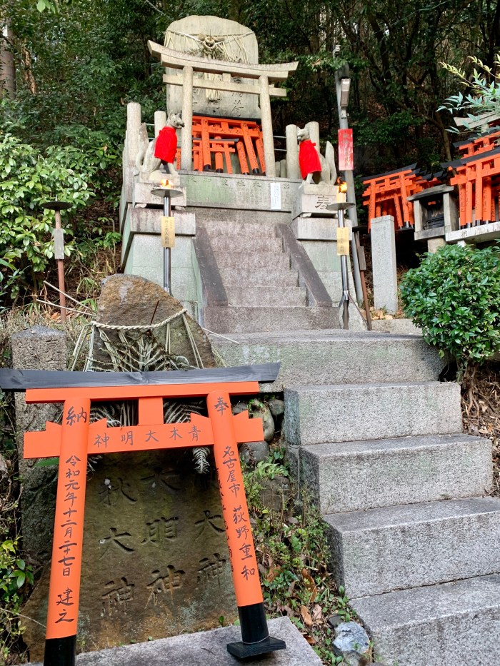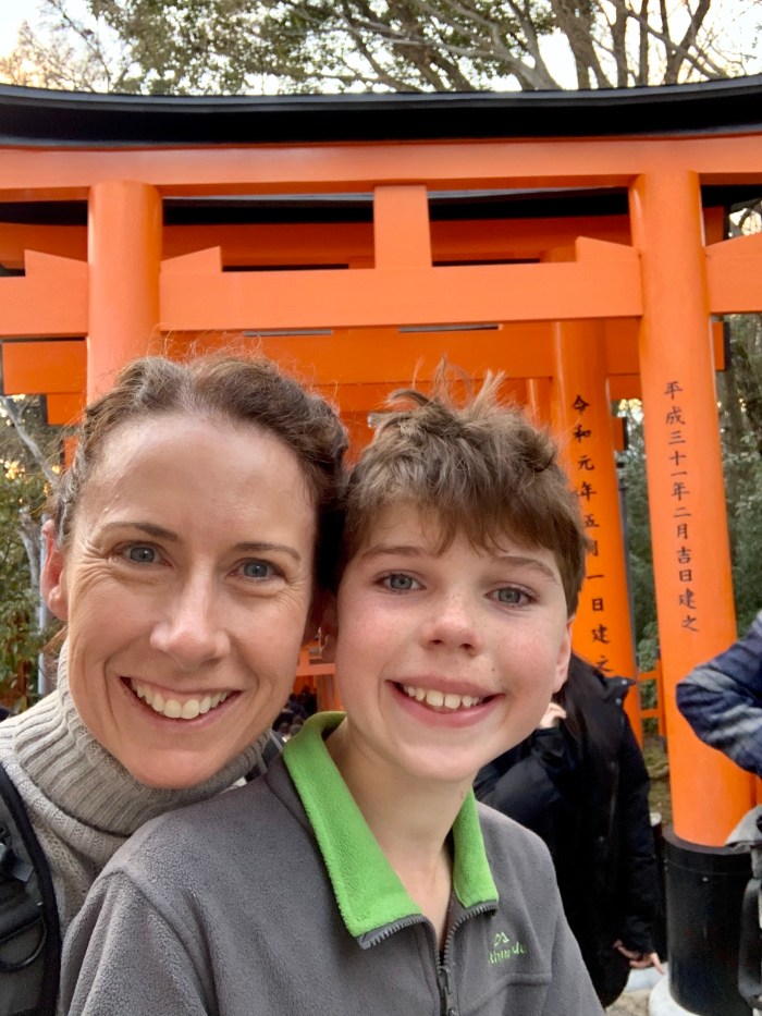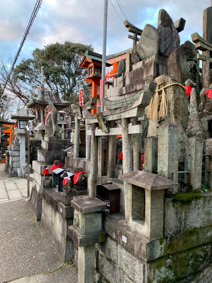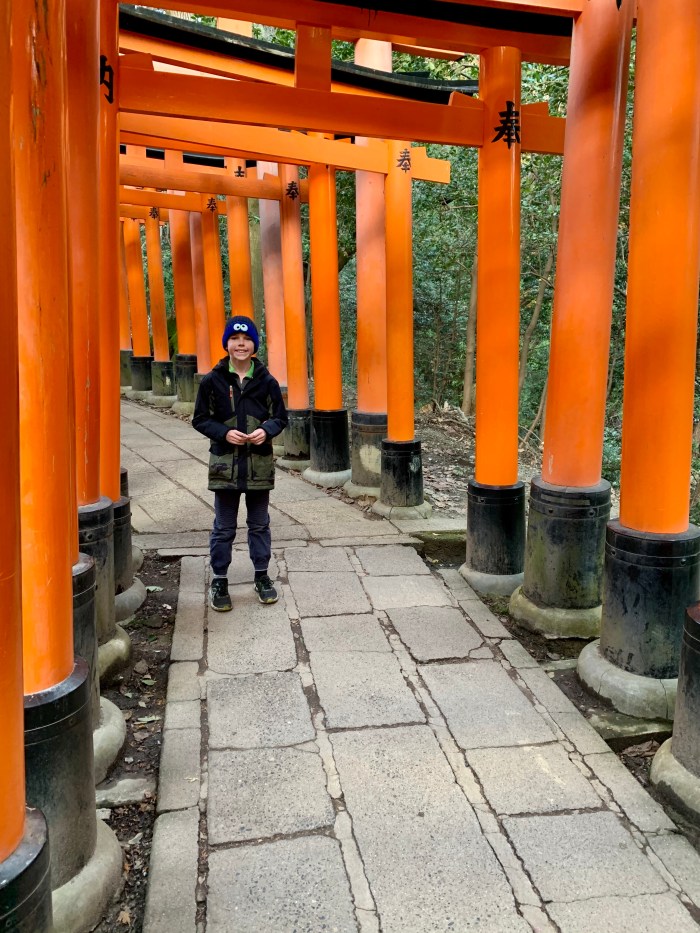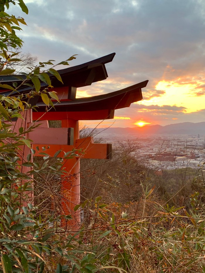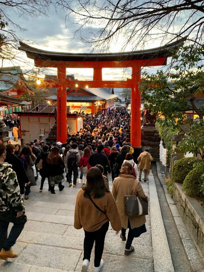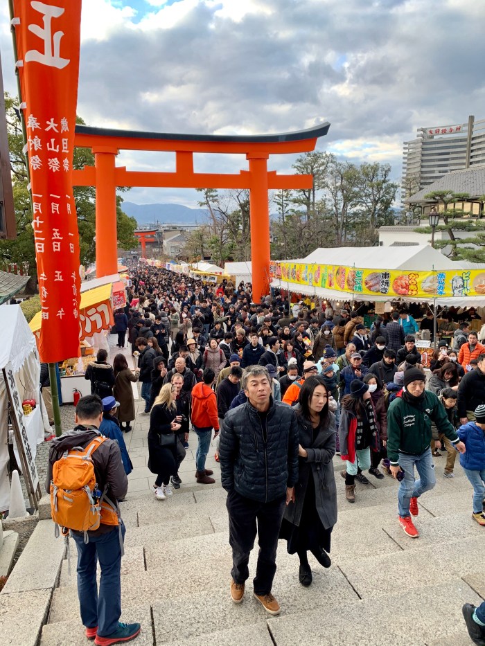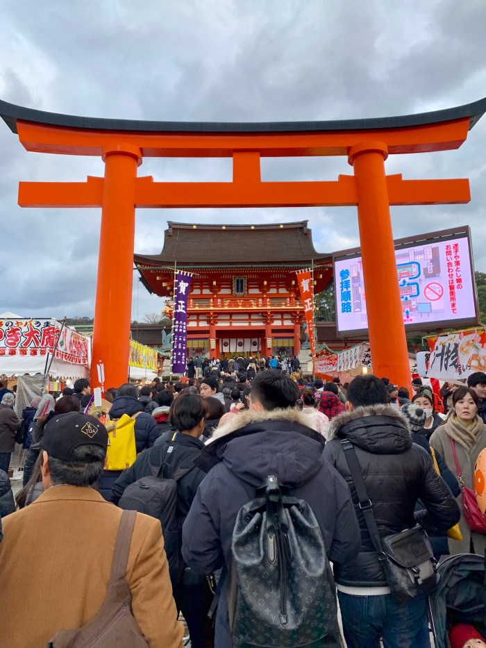 The red torii of the Fushimi Inari shrine are world-famous, so we couldn’t miss a visit here. And New Year’s Day at Inari, when so many worshippers visit to pray for good fortune for the coming year, was definitely an experience!