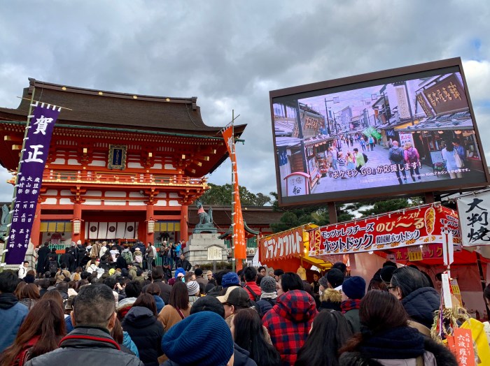 And so while visiting Fushimi Inari in the peace and serenity of a quiet day would be wonderful (another reason to come back), the New Year’s Day revellers were equally exciting to witness. Thus, our day ended with us flowing with the crowd back to the station…