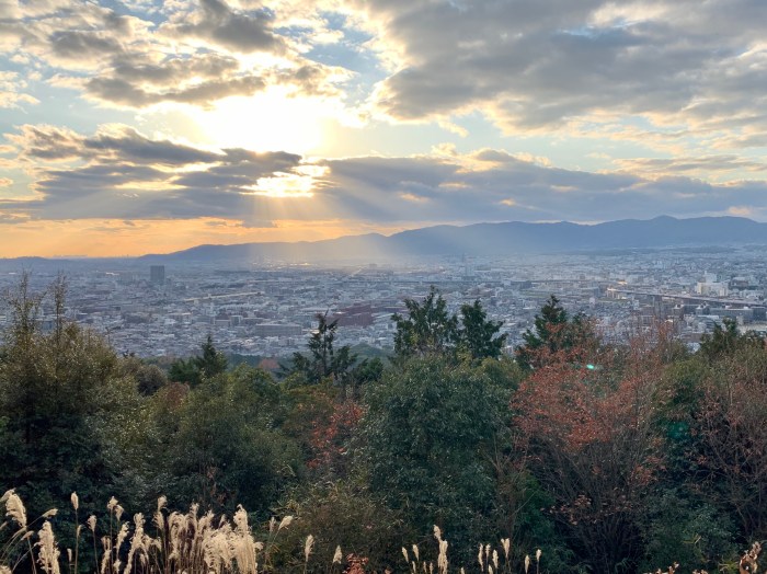 And a rather special view over Kyoto. (Play sunlight shining through clouds music.)