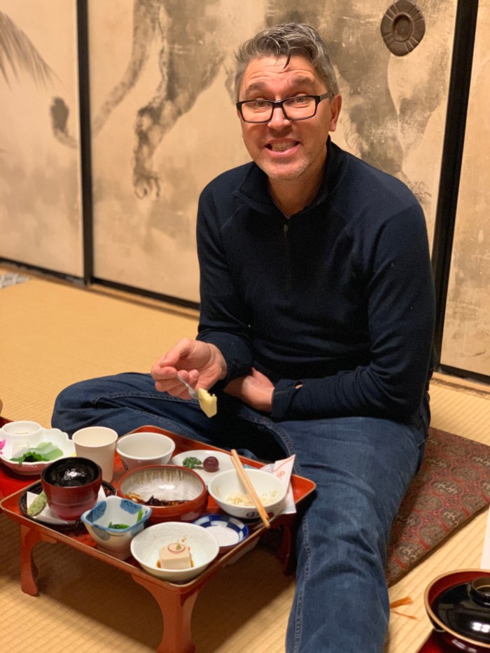 Dinner was a fancy vegetarian feast in a separate private tatami meal room. Yeah, it was chilly in the Shukubo (though there were gas heaters and our room was plenty warm for sleeping).