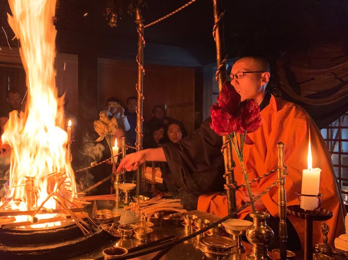 Back at Eko-in, our Shukubo, we were lucky to witness the morning fire ceremony, which the monks use to cleanse and pray. We wrote wishes on sticks of wood, which were burnt in the fire. I asked for rain in Australia, so, I’m hoping it works.