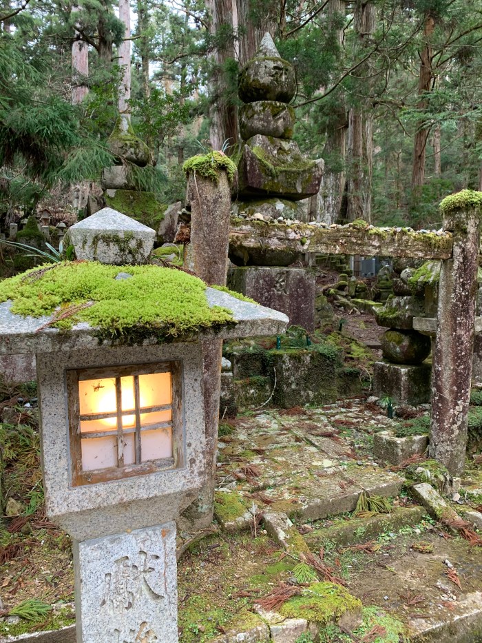 We visited Okunoin again in the daytime to see the soaring cedars and beautiful moss covered stone in the light.