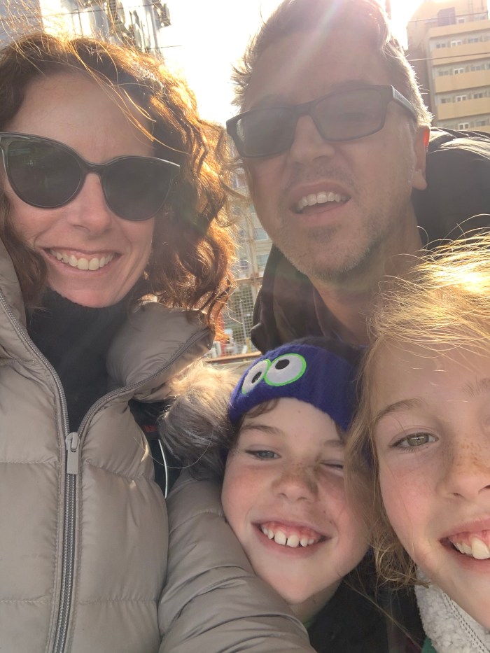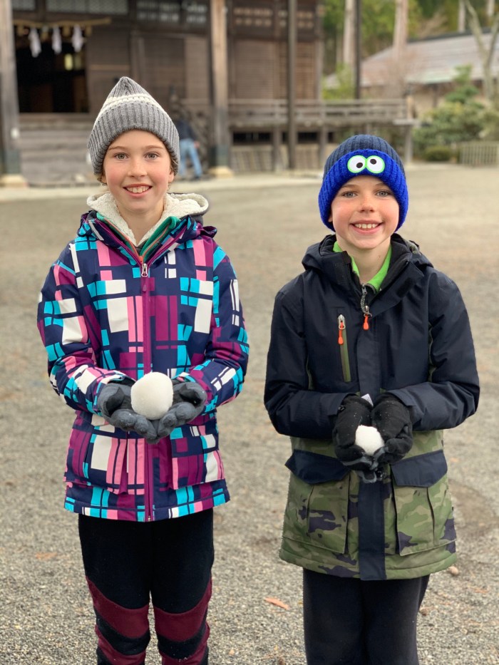The kids found their first pile of snow outside one of the temples in town, which was most exciting!