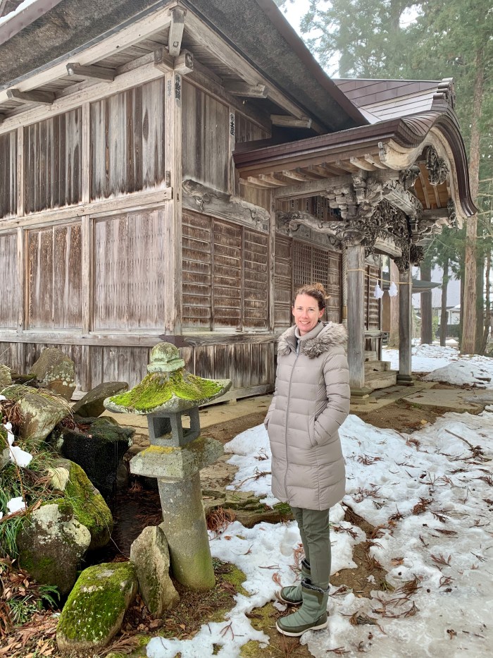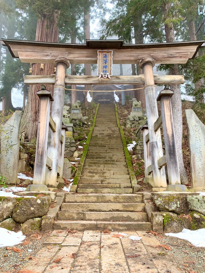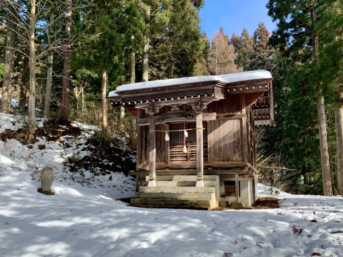 Kenmei-ji and Yuzawa Shrine on the hill at the north-east of the village are almost mystical in the snow and mist. Looks like a good place for Samurai training.