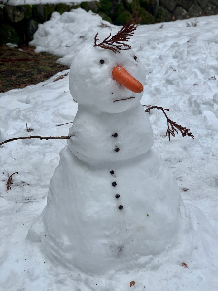 Otherwise, you can always build a snowman. Ours was a little lame.